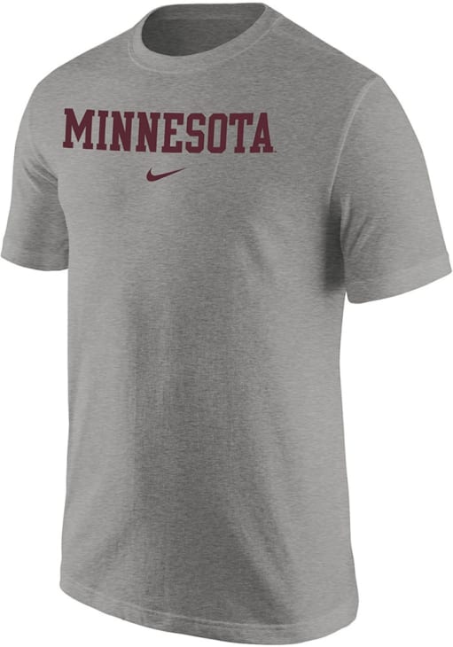 Display your team spirit with this remarkable Minnesota Golden Gophers Nike Grey Core Cotton Short Sleeve T Shirt! The Minnesota Short Sleeve Tee showcases a team graphic screenprinted across chest that truly sets it apart. Stand out from the crowd and proudly declare your allegiance to the Golden Gophers with this exceptional Grey Minnesota T Shirt. Fight, Gophers!