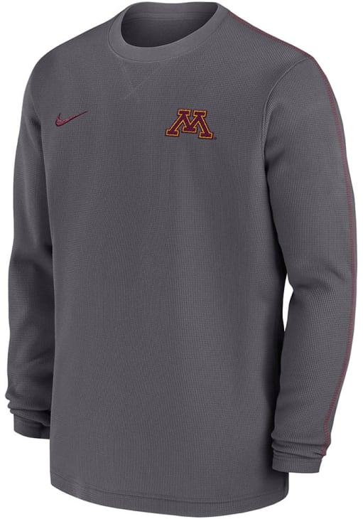 Show your Minnesota Golden Gophers spirit in this Minnesota Anthracite T Shirt! This Minnesota Sideline Coach Gameday Long Sleeve T Shirt makes a great layer for cooler nights cheering on the Golden Gophers. Featuring a embroidered team graphic on left chest, this Minnesota Golden Gophers Long Sleeve Tee is an essential addition for every fan. Fight, Gophers!