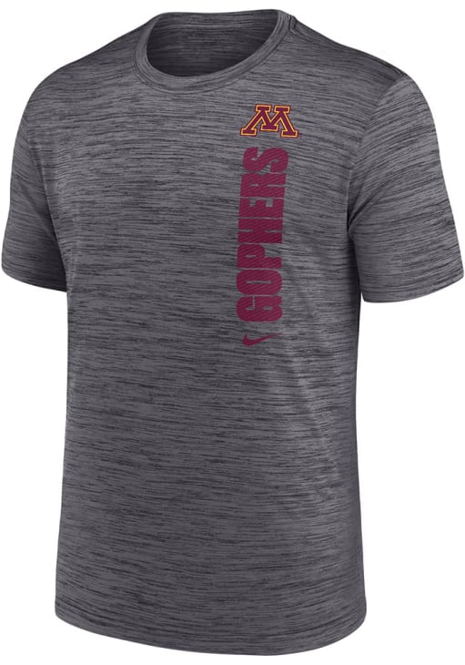 Stay cool and display your Minnesota Golden Gophers spirit in this Grey Team Issue Velocity T Shirt. This Short Sleeve is the perfect Tee for working out, heading to class, or cheering on the Golden Gophers. Showcasing a screen print seasonal team issue graphic with momentum stripe pattern on left chest, there's no mistaking your Minnesota Golden Gophers pride in this Golden Gophers Team Issue Velocity T Shirt!