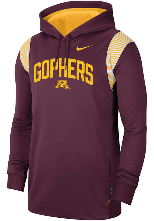 Size Chart for Mens Minnesota Golden Gophers Maroon Nike Therma PO Long Sleeve Hoodie