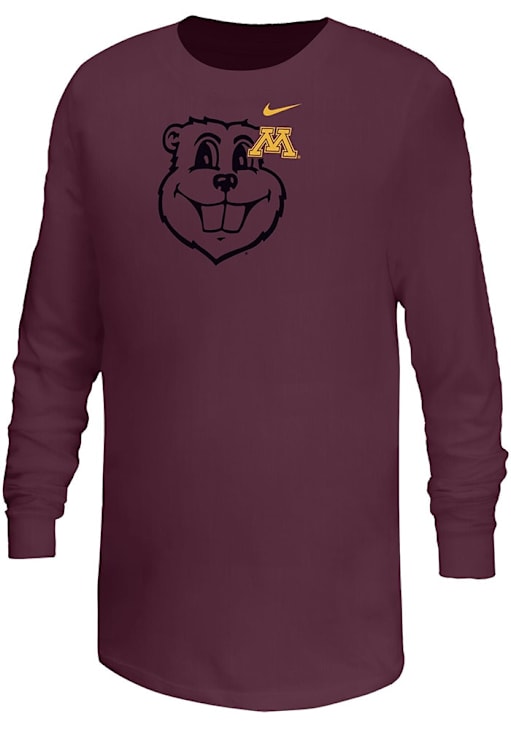 Your little Golden Gophers fan a will love supporting the Minnesota Golden Gophers in this Long Sleeve T-Shirt. This Primary logo T-Shirt features a MN YTH NIKE MASCOT LOGO LS / GOPHERS / MAROON.