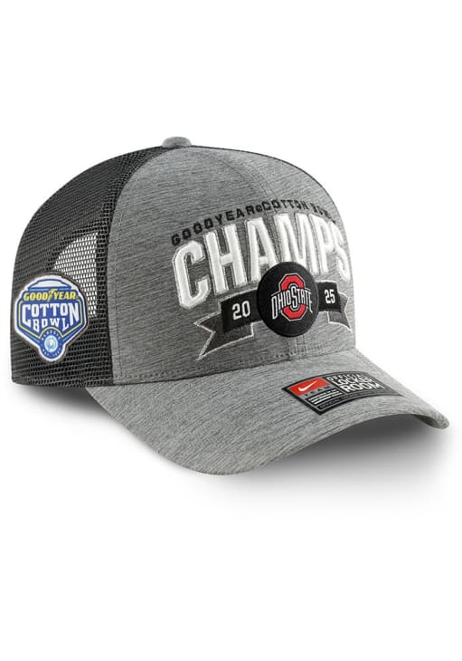 Product Details Product Details Nike 2024 Cotton Bowl Champs Locker Room TruckerFront embroidered team logoMesh on side and back panelsSide Nike swooshPlastic snap closurePOLYESTERCurved BillLow CrownStructuredWipe clean with cloth or cleaning kitImported Officially Licensed This Grey Buckeyes Adjustable Hat features a Front embroidered 2024 Cotton Bowl champs logo.