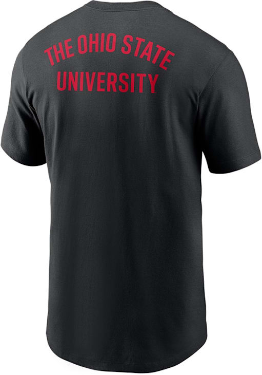 Display your team spirit with this remarkable Ohio State Buckeyes Nike Black Legacy 2 Hit Short Sleeve T Shirt! The The Ohio State University Short Sleeve Tee showcases a alternate logo on left chest with wordmark on back that truly sets it apart. Stand out from the crowd and proudly declare your allegiance to the Buckeyes with this exceptional Black The Ohio State University T Shirt. Go Buckeyes!