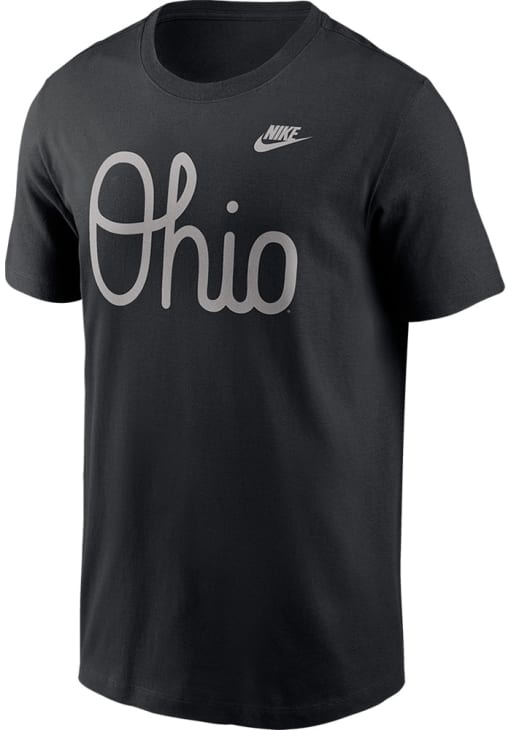 Display your team spirit with this remarkable Ohio State Buckeyes Nike Black Vintage Script Cotton Short Sleeve T Shirt! The The Ohio State University Short Sleeve Tee showcases a team graphic on front chest that truly sets it apart. Stand out from the crowd and proudly declare your allegiance to the Buckeyes with this exceptional Black The Ohio State University T Shirt. Go Buckeyes!