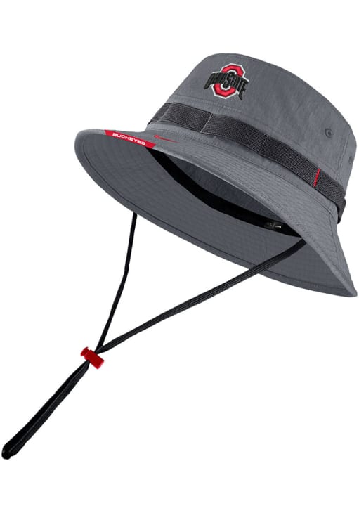 Product Details Product Details Dri-FIT ripstop fabricationBreathable mesh insertEmbroidered eyelets at sideElastic loops above brimDri-FIT technology to wick away moistureWoven label of team wordmark on backAdjustable drawcordUnstructured relaxed fitLow crownWoven clip tag on brim100% PolyesterImported Officially Licensed Make gamedays and the offseason filled with Buckeyes spirit by getting this Ohio State Buckeyes Sideline Boonie Style Mens Bucket Hat from Rally House! We're sure you'll like this Bucket Hat since it comes with a front team logo.