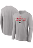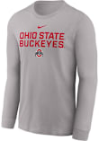 Show your Ohio State Buckeyes spirit in this The Ohio State University Grey T Shirt! This The Ohio State University Sideline Team Issue Long Sleeve T Shirt makes a great layer for cooler nights cheering on the Buckeyes. Featuring a screenprinted team name and logo on front chest, this Ohio State Buckeyes Long Sleeve Tee is an essential addition for every fan. Go Buckeyes!