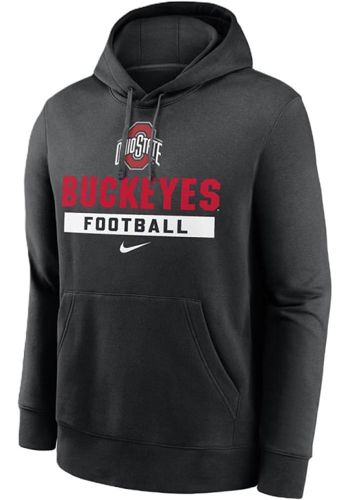 Mens Ohio State Buckeyes Black Nike Club Fleece Stacked Football Hooded Sweatshirt