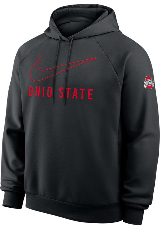 Make a bold statement in this Ohio State Buckeyes Black Dri-Fit Long Sleeve Hood! This The Ohio State University Long Sleeve Hoodie features a swoosh and wordmark on front chest and logo on left sleeve. Go Buckeyes!
