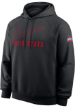 Product Details Product Details Made with recycled polyesterPrimary color drawcordsHoodRibbed sleeve openingScreen printed wordmarke and logos78%POLYESTER/22%COTTONMachine washable Officially Licensed Make a bold statement in this Ohio State Buckeyes Black Dri-Fit Long Sleeve Hood! This The Ohio State University Long Sleeve Hoodie features a swoosh and wordmark on front chest and logo on left sleeve. Go Buckeyes!