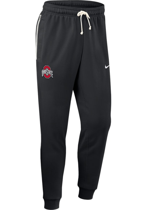 Cozy up in these Ohio State Buckeyes Mens Black Dri-Fit Sweatpants! Whether you're lounging at home or cheering at the game, these The Ohio State University Buckeyes Sweats are a great way to show your Buckeyes support in comfort. These Ohio State Buckeyes Sweatpants feature a logo on right leg and swoosh on left leg.
