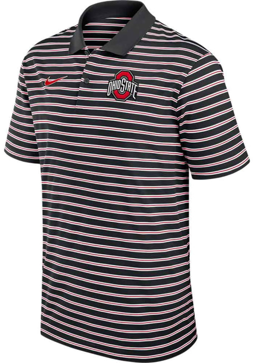 Enhance your professional style with this striking Mens Black Short Sleeve Polo Shirt! Showcase your team pride among colleagues with this exceptional The Ohio State University Black Stripe Short Sleeve Polo. Stand out and make a statement in this Ohio State Buckeyes Short Sleeve Polo, featuring a heat seal of team logo on left chest that adds a touch of distinction to your look.