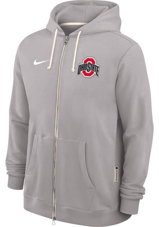 Embrace your Buckeyes spirit with pride in this Ohio State Buckeyes Long Sleeve Zip. This Mens Grey Dri-Fit Long Sleeve Zip showcases a logo on left chest and wordmark on back. You'll want to wear this Ohio State Buckeyes Long Sleeve Zip every day.