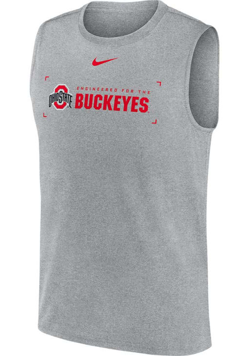 Elevate your tailgating attire to the next level with this Ohio State Buckeyes Tank Top! When the sun is hot, you'll want to stay cool and comfortable in this Grey DriFIT Legend Sleeveless Shirt, so you can cheer on the Buckeyes. This The Ohio State University Tank Top features a team wordmark and basketball logo on front chest, making it a great option for any Ohio State Buckeyes fan.