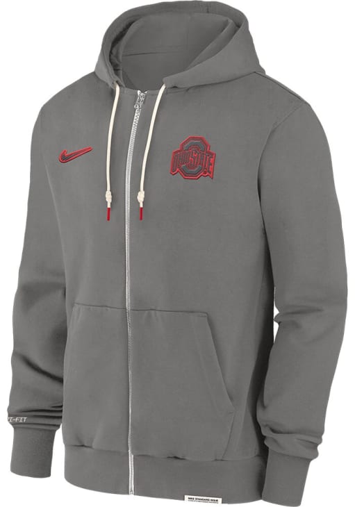 Embrace your Buckeyes spirit with pride in this Ohio State Buckeyes Long Sleeve Full Zip Jacket. This Mens Grey Sideline Player Long Sleeve Full Zip showcases a heat seal of team logo on left chest. You'll want to wear this Ohio State Buckeyes Long Sleeve Full Zip Jacket every day.