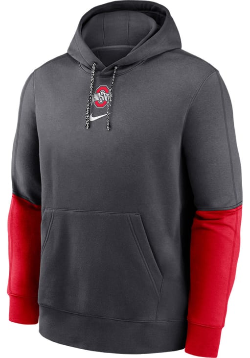 Embrace your Buckeyes pride and showcase your team spirit with confidence in this Ohio State Buckeyes Long Sleeve Hoodie! Stay warm and stylish with the The Ohio State University Mens Anthracite Team Issue Club Hooded Sweatshirt. Designed with screenprint team graphic across chest, this Buckeyes Long Sleeve Hoodie is a must-have for dedicated fans.