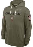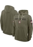 Embrace your Buckeyes pride and showcase your team spirit with confidence in this Ohio State Buckeyes Long Sleeve Hoodie! Stay warm and stylish with the The Ohio State University Mens Olive Military Appreciation Dri-FIT Hooded Sweatshirt. Designed with logo and wordmark on center chest, this Buckeyes Long Sleeve Hoodie is a must-have for dedicated fans.