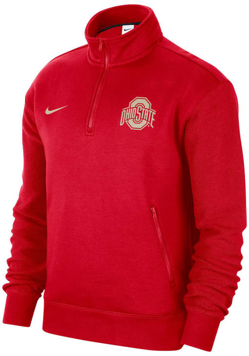 Embrace the warmth and showcase your Buckeyes pride with our Ohio State Buckeyes Long Sleeve Qtr Zip Pullover. This Mens Red Athletic Department Long Sleeve Pullover offers a team logo on left chest, Nike swoosh on right chest, and team name with 'Athletic Department' on back for the perfect combination of comfort and style. Elevate your everyday look with this must-have Ohio State Buckeyes Long Sleeve Qtr Zip Pullover.