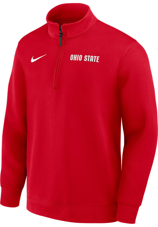 Embrace the warmth and showcase your Buckeyes pride with our Ohio State Buckeyes Long Sleeve Qtr Zip Pullover. This Mens Red DriFIT Coaches Long Sleeve Pullover offers a team logo on left chest for the perfect combination of comfort and style. Elevate your everyday look with this must-have Ohio State Buckeyes Long Sleeve Qtr Zip Pullover.