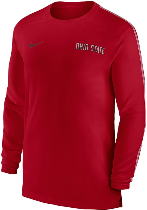 Product Details Product Details Crew necklineScreen print team graphicsContrast stitching on shoulders100% RECYCLED POLYESTERMachine wash coldImported Officially Licensed Make a bold statement in this Ohio State Buckeyes Red Sideline Coach Long Sleeve T-Shirt! This The Ohio State University Long Sleeve Tee features a sreenprint team graphic on left chest. Go Buckeyes!