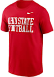 Display your team spirit with this remarkable Ohio State Buckeyes Nike Red Football Stacked Football Short Sleeve T Shirt! The The Ohio State University Short Sleeve Tee showcases a screen printed school name football wordmark on front chest that truly sets it apart. Stand out from the crowd and proudly declare your allegiance to the Buckeyes with this exceptional Red The Ohio State University T Shirt. Go Buckeyes!