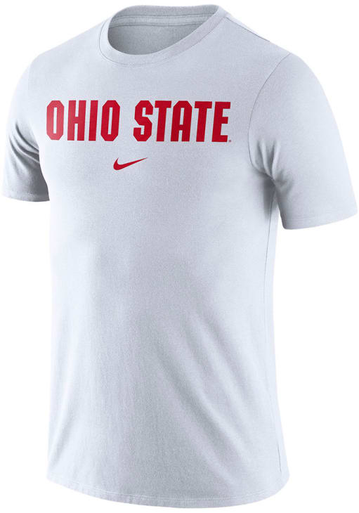 Display your team spirit with this remarkable Ohio State Buckeyes Nike White Essential Wordmark Short Sleeve T Shirt! The The Ohio State University Short Sleeve Tee showcases a suede print team wordmark on center chest that truly sets it apart. Stand out from the crowd and proudly declare your allegiance to the Buckeyes with this exceptional White The Ohio State University T Shirt. Go Buckeyes!