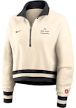 Embrace the warmth and showcase your Buckeyes pride with our Ohio State Buckeyes Long Sleeve Qtr Zip. This Womens Ivory Phoenix Crop Long Sleeve Pullover offers a embroidered team name on left chest and logo patch on left wrist for the perfect combination of comfort and style. Elevate your everyday look with this must-have Ohio State Buckeyes Long Sleeve Qtr Zip.