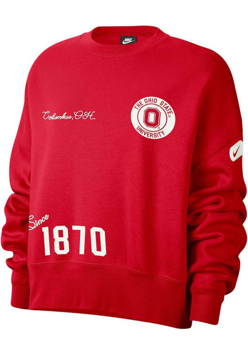 Gear up for the ultimate game day experience with this remarkable Ohio State BuckeyesWomens Red Everyday Campus Style Crew Sweatshirt! Designed with the true fan in mind, this Buckeyes Long Sleeve Sweatshirt features a screen print team logo at left chest with embroidered establish date at left hem. Stay warm and comfortable with this Womens The Ohio State University Buckeyes Crew Sweatshirt.