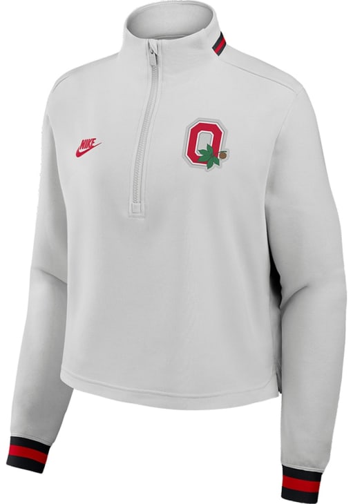 Embrace the warmth and showcase your Buckeyes pride with our Ohio State Buckeyes Long Sleeve Qtr Zip. This Womens Silver Heritage Long Sleeve Pullover offers a screen print for the perfect combination of comfort and style. Elevate your everyday look with this must-have Ohio State Buckeyes Long Sleeve Qtr Zip.