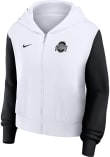 Make a bold statement with your The Ohio State University pride with this Ohio State Buckeyes Full Zip Jacket. Show your team spirit in style in this Womens White Colorblocked Script Long Sleeve Full Zip. Make a statement in this Ohio State Buckeyes Womens Long Sleeve Full Zip Jacket, which features a screen print team logo at left chest with screen print team name on center back.