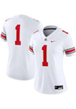 Get in the game with this ultimate Ohio State Buckeyes Womens White Game Football Jersey. Wear this Jersey to the upcoming tailgate or game for your Buckeyes. With a screen print and embroidery numbers on center chest, back, and shoulders, this Womens Football Jersey is a great way to show your team spirit in style.