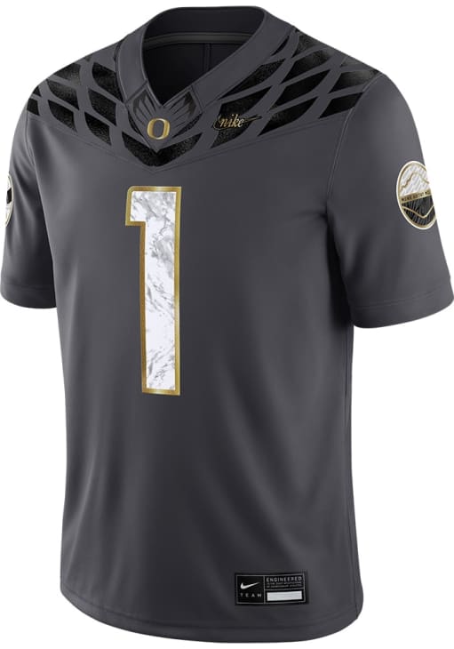 Get in the game with this ultimate Oregon Ducks Mens Anthracite Football Vapor Alternate Football Jersey. Wear this Jersey to the upcoming tailgate or game for your Ducks. With a number on front and back, this Mens Football Jersey is a great way to show your team spirit in style.
