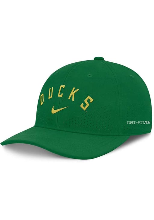 Product Details Product Details Nike Rise Performance Structured AdjustableFront embroidered team wordmarkNike swoosh on front of crownPerforation on front and back panelsBack plastic snap closurePOLYESTERCurved BillLow CrownStructuredWipe clean with cloth or cleaning kitImported Officially Licensed This Green Ducks Adjustable Hat features a front embroidered team logo.