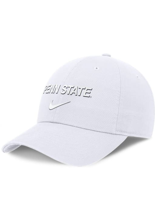 Product Details Product Details Nike H86 Relaxed-Fit Adjustable HatHigh-density embroidery for front logo and SwooshAdjustable strap back closureWashed fabric gives hat a soft, distressed lookAdjustable ClosureCotton materialCottonCurved BillLow CrownUnstructuredWipe clean with cloth or cleaning kitImported Officially Licensed This White Nittany Lions Adjustable Hat features a team logo on front.