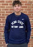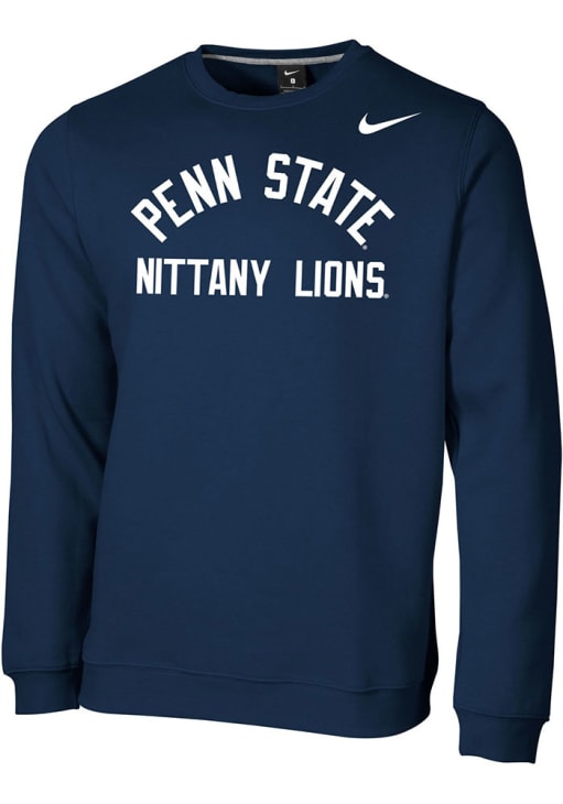 Gear up for the ultimate game day experience with this remarkable Penn State Nittany LionsMens Navy Blue Club Fleece Crew Sweatshirt! Designed with the true fan in mind, this Nittany Lions Long Sleeve Crew Sweatshirt features a screen print of Penn State arched over Nittany Lions on front chest. Stay warm and comfortable with this Mens Penn State Nittany Lions Crew Sweatshirt.