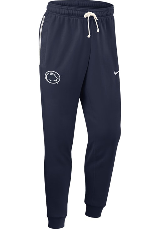 Cozy up in these Penn State Nittany Lions Mens Navy Blue Dri-Fit Sweatpants! Whether you're lounging at home or cheering at the game, these Penn State Nittany Lions Sweats are a great way to show your Nittany Lions support in comfort. These Penn State Nittany Lions Sweatpants feature a logo on right leg and swoosh on left leg.