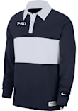 Make a bold statement in this Penn State Nittany Lions Nike Mens Navy Blue Rugby Striped Long Sleeve Long Sleeve Polo! This Polo features a team logo embroidered on left chest, making this Mens Long Sleeve Polo Shirt perfect for any Penn State fan who wants to display their spirit in any setting.