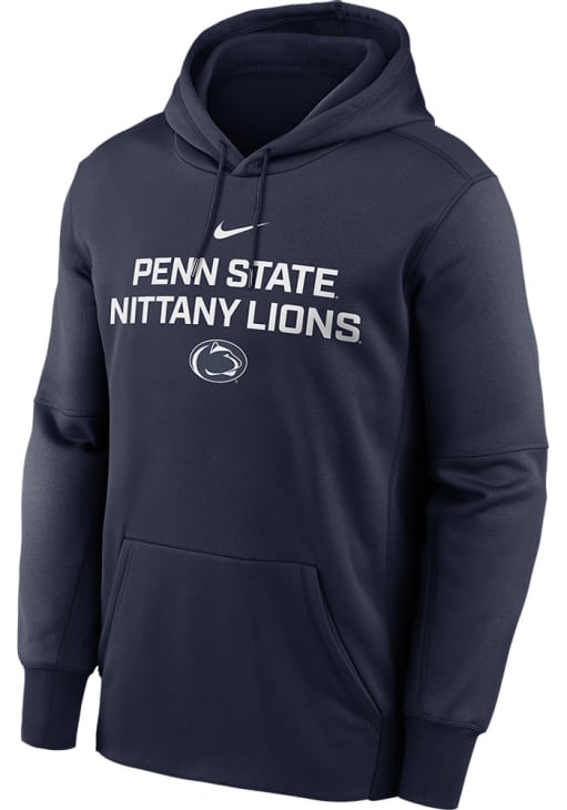 Size Chart for Mens Penn State Nittany Lions Navy Blue Nike Wordmark Long Sleeve Hoodie