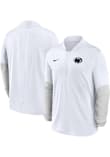 Embrace the warmth and showcase your Nittany Lions pride with our Penn State Nittany Lions Long Sleeve Qtr Zip Pullover. This Mens White Dri-Fit Long Sleeve Pullover offers a logo on left chest and swoosh on right chest for the perfect combination of comfort and style. Elevate your everyday look with this must-have Penn State Nittany Lions Long Sleeve Qtr Zip Pullover.