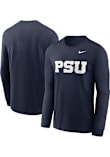 Show your Penn State Nittany Lions spirit in this Penn State Navy Blue T Shirt! This Penn State Alternate Logo Long Sleeve T Shirt makes a great layer for cooler nights cheering on the Nittany Lions. Featuring a team graphic on front chest, this Penn State Nittany Lions Long Sleeve Tee is an essential addition for every fan. Go Lions!
