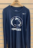 Show your Penn State Nittany Lions spirit in this Penn State Navy Blue T Shirt! This Penn State Dri-FIT Name Drop Long Sleeve T Shirt makes a great layer for cooler nights cheering on the Nittany Lions. Featuring a screen print of Lion logo over "Penn State" on front chest, this Penn State Nittany Lions Long Sleeve Tee is an essential addition for every fan. Go Lions!