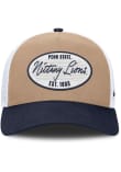 Product Details Product Details Nike Rise Structured A Frame Trucker CapFront patch with embroidered team scriptTwo tone crown and visorTrucker mesh on side and back panelsBack team logo woven tabPlastic snap closureCOTTON/POLY BLENDCurved BillLow CrownA-FrameWipe clean with cloth or cleaning kitImported Officially Licensed This Brown Nittany Lions Adjustable Hat features a front patch with embroidered team script.
