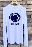 Show your Penn State Nittany Lions spirit in this Penn State White T Shirt! This Penn State Dri-FIT Name Drop Long Sleeve T Shirt makes a great layer for cooler nights cheering on the Nittany Lions. Featuring a screen print of Lion logo over "Penn State" on front chest, this Penn State Nittany Lions Long Sleeve Tee is an essential addition for every fan. Go Lions!