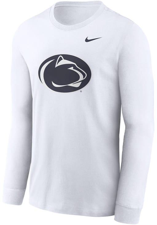 Show your Penn State Nittany Lions spirit in this Penn State White T Shirt! This Penn State Primary Logo Design Long Sleeve T Shirt makes a great layer for cooler nights cheering on the Nittany Lions. Featuring a screenprint team logo across chest, this Penn State Nittany Lions Long Sleeve Tee is an essential addition for every fan. Go Lions!