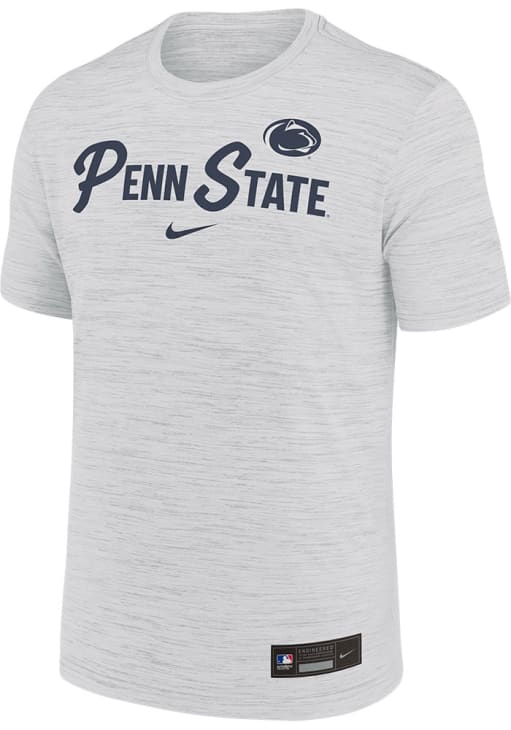 Stay cool and display your Penn State Nittany Lions spirit in this White Velocity T Shirt. This Short Sleeve is the perfect Tee for working out, heading to class, or cheering on the Nittany Lions. Showcasing a Dri-Fit reflective performance material with waterbase print team Velocity graphic on chest, there's no mistaking your Penn State Nittany Lions pride in this Nittany Lions Velocity T Shirt!