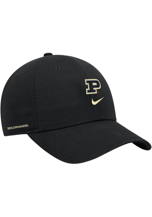 Product Details Product Details Nike - Cotton Club AdjTeam logo on frontTeam color all overNike swoosh on left hand sideAdjustable closureCotton TwillCurved BillHigh CrownLightly StructuredWipe clean with cloth or cleaning kitImported Officially Licensed This Black Boilermakers Adjustable Hat features a front embroidered primary team logo with side team wordmark.