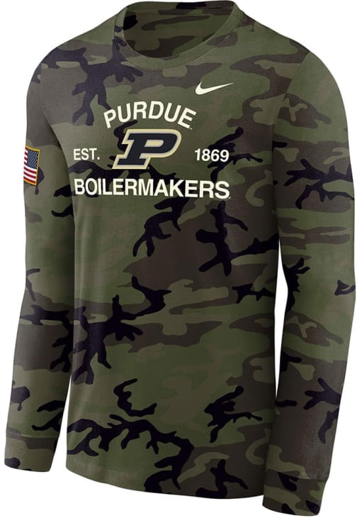 Product Details Product Details Ribbed cuffsRibbed neck bandJordan logo on front chestRecycled FabricScreen print graphic100% POLYESTERMachine washable Officially Licensed Make a bold statement in this Purdue Boilermakers Green Military Appreciation DriFIT Long Sleeve T-Shirt! This Purdue Long Sleeve Tee features a team logo on front chest. Hail Purdue!