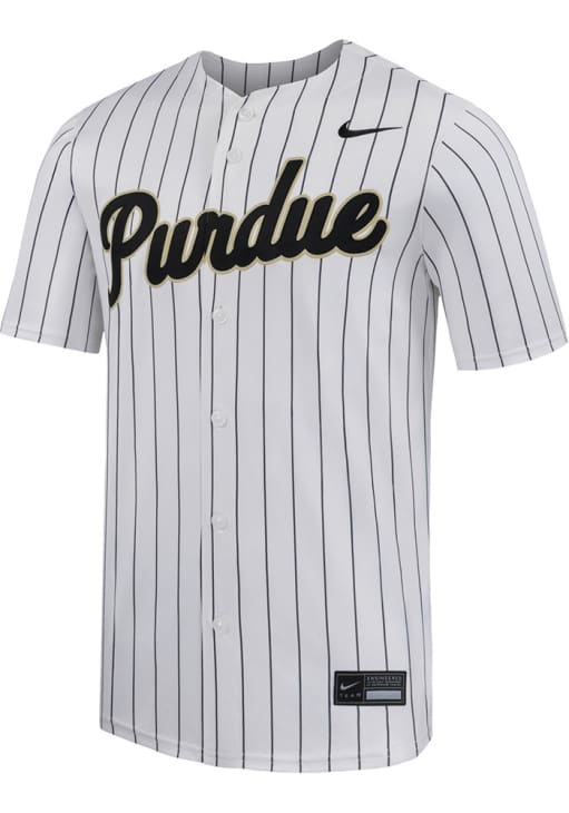 There will be no mistaking your Purdue support when you wear this Purdue Boilermakers Mens White Limited Full Button Pinstripe Jersey! Look great and stand out from the crowd in this Purdue Boilermakers Baseball Jersey, which features a team graphic on front chest.