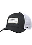 Product Details Product Details Nike - Mesh Back RiseTeam logo on frontMesh backingAdjustable closureNike swoosh on left hand sideCotton Poly BlendCurved BillHigh CrownStructuredWipe clean with cloth or cleaning kitImported Officially Licensed This Black Boilermakers Adjustable Hat features a front embroidered team wordmark patch.