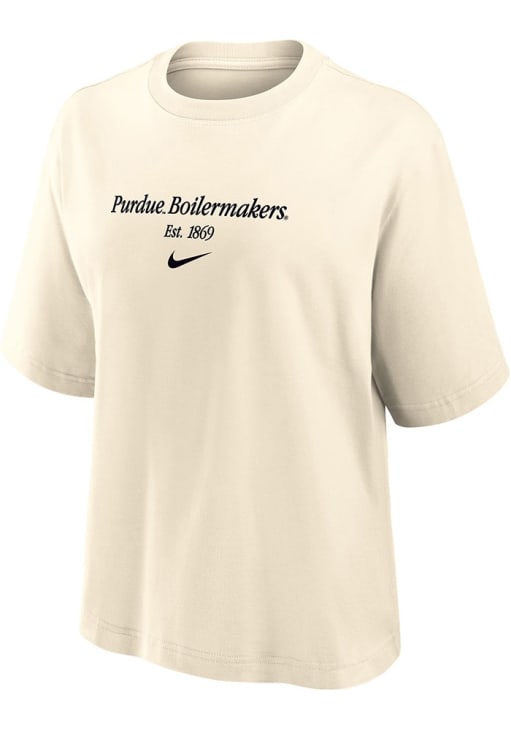 Display your team spirit with this remarkable Purdue Boilermakers Natural Boxy Short Sleeve T-Shirt! The Purdue Short Sleeve Tee showcases a screenprint team graphic on center chest that truly sets it apart. Stand out from the crowd and proudly declare your allegiance to the Boilermakers with this exceptional Natural Purdue T-Shirt. Hail Purdue!