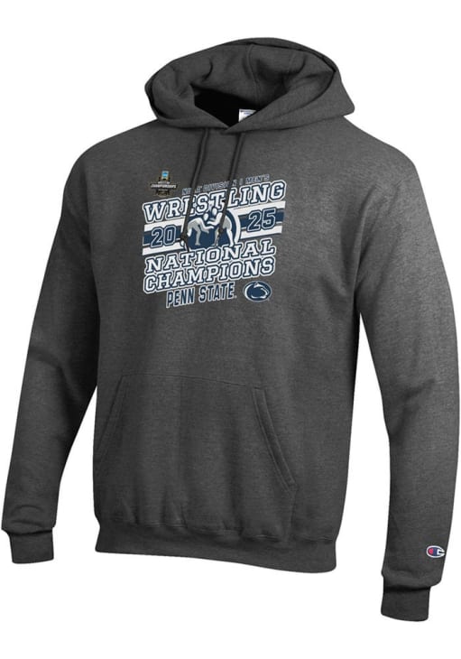 Mens Penn State Nittany Lions Ash Champion 2025 Wrestling National Champions Powerblend Hooded Swe..